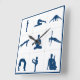 Adicione Zen à sua arte de parede. Posições de Yoga no Relógio de Parede Quadrado com uma borda azul. decoração temática de excelente para uma sala de meditação ou estúdio.