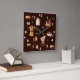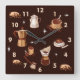 Relógio Quadrado Pote de café, feijão e taça desenhados à mão