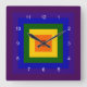 Mostre seu amor pela cor com um arco-íris geométrico. Uma série de quadrados vermelhos, laranja, amarelo, verde, azul, índigo e violeta irradia do centro desta design festiva. Imagem de pixel 5400 x 5400 criada digitalmente. Copyright ©2011 Claire E. Skinner, Todos os direitos reservados.