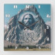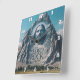 Uma grande montanha adornada com uma fotografia impressionante de Jesus, irradiando paz e serenidade sobre a paisagem.