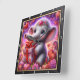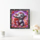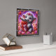 Este relógio de parede quadrado encantador apresenta uma ilustração digital emocionante de um elefante bebê alegre com grandes olhos azuis cintilantes. O elefante está usando uma delicada coroa floral adornada com um coração central e está segurando alegremente uma grande caixa de presente rosa embrulhada com uma fita de cetim vermelha. A cena é ambientada em um fundo vibrante e sonhador repleto de efeitos de nebulosa magenta e roxa giratórios, poeira estelar brilhante e dezenas de corações flutuantes. Rosas cor-de-rosa exuberantes e sotaques florais enquadram a parte inferior da composição. A obra de arte é encased em uma moldura moderna de madeira preta com marcadores numéricos brancos em negrito para fácil leitura. Este acessório funcional para o lar é uma peça decorativa perfeita para berçários ou como um presente de coração