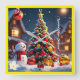 Uma cena festiva de Natal com um boneco de neve, uma bela árvore de Natal iluminada, e flocos de neve cintilantes, todos iluminados com um brilho de ouro, capturando o calor e a magia da estação. "A Imagem Original foi gerada pelo Meta AI. A IA gerou trabalho de arte. Licenciado sob CC BY-SA 4.0.