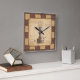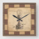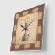 Elegante vintage antigo design Square Wall Clock. Arte de esboço do "Rei-Peão/Rainha-Peão". Tema de fundo nº 5: "Vintage Chessboard". Uma ótima ideia de presente/presente para cada amante do xadrez. — Visite minha coleção vintage de "xadrez" para ver mais produtos com este design e outros designs de xadrez em posters, postais, cartões de convite, notebooks, adesivos, canecas, chaveiros, ornamentos e outros produtos populares.