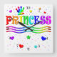 Clipart do texto dos desenhos animados com a princesa da palavra nas letras coloridas grandes cercadas por corações, por estrelas, por flâmulas, por ondas e por uma coroa! Um design do girlie com um arco-íris das cores!