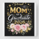 Relógio Quadrado Proud Mom of a Graduate 2026 – Elegant Gold & Flor