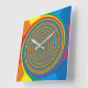 Uma espiral psicodélica em massa azul vermelha laranja torna este relógio de parede único.Disponível em formas redondas ou quadradas. Personalizar para adicionar números.