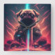 Relógio Quadrado Pug Adorável no Figurino Robô Futurístico