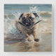 Relógio Quadrado Pug Feliz na Praia personalizável