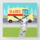 Se você tem uma sede para um design moderno do meio século, este pulso de disparo de parede acrílico do Milkman retro da cidade pequena é para você! O estilo dos anos 60, características de design minimalistas da arte um dedicado, milkman que faz sua manhã arredonda-se. O homem louro está vestindo calças, a camisa e o chapéu brancos leitosos com um laço, uma correia e uns calçados pretos. Este homem de entrega do cálcio e da vitamina D está andando acima de um passeio dianteiro, levando a fonte semanal de uma família do leite integral, fresco nas garrafas de vidro. O jornal de manhã está ainda no passeio. Não se preocupe. Somente a boa notícia é permitida nesta cidade! O passeio é cercado pelo tipo de gramado verde encontrado somente em cidades pequenas e em subúrbio. Há igualmente um branco, cerca de piquete. Na rua, nós vemos o passeio doce do milkman! É um amarelo cremoso, caminhão do leite com uma listra vermelha no lado e a rotulação vermelha que diz, "LEITERIA". No lado oposto da rua, nós vemos um céu do aqua e a luz - silhuetas azuis de árvores de cedro. Estes desenhos animados kitschy olham como uma cena fora de uma comédia velha da televisão. Traga no bolo amarelo com glacé do chocolate--o bolo oficial de todas as donas de casa da televisão e de suas famílias afortunadas! Os ossos fortes de construção nunca provaram tão bons!
