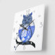 Relógio Quadrado Pulso de disparo de parede azul da coruja do
