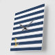 As características chiques náuticas do pulso de disparo de parede azuis e as listras brancas cobriram com uma âncora do ouro.