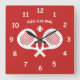Pulso de disparo de parede cruzado das raquetes de tênis do padel para o clube. O quadrado ostenta o pulso de disparo com nome e logotipo do custon. Design vermelho com raquetes e bola. A ideia agradável do presente de aniversário para a casa do clube do clube, o jogador, o treinador, a mamã, o pai, o clube, os miúdos etc. adicionam suas próprias citações engraçadas ou nomeiam-nas. Decoração dos esportes para a casa ou a casa do clube.