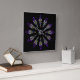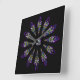 Um teste padrão bonito do vitral decora este pulso de disparo de parede em cores dominantes de roxo, de azul, de amarelo e de preto. Doze penas abstratas circundam uma máscara central para formar um design espiritual da mandala com uma sensibilidade do nativo americano.