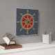 Vermelho e azul com o pulso de disparo de parede náutico da roda do navio de madeira.