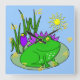 Características deste design bonitos do sapo um sapo dos desenhos animados que senta-se em uma almofada de Lilly com flores. Grande presente para sua criança. Aperfeiçoe para o quarto ou a sala de jogos do seu miúdo.