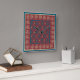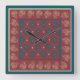 Um pulso de disparo de parede elegante, quadrado com um teste padrão floral formalizado em bege e em azul escuro em um fundo rico de Borgonha.