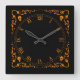 Relógio Quadrado Pumpkin Orange Halloween Magic Border with Skulls