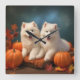 Relógio Quadrado Pumpkin Samoed Puppy Autumn Delight