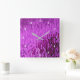 Two tone purple brick block pattern, running in a vertical direction. Purple gradation ranging from soft magenta to very dark pink purple with white highlights creates a faux fooler shimmer effect. White numbers mark the hours,