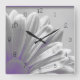 The cute Purple Floral Highlights Square Clock added a modern flair to the decor of your home, office, apartment or dorm room. This contemporary botanical clock features a digitally enhanced black and white floral photograph of a daisy flower blossom with a purple tint and a silver gray background.