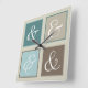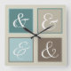 Relógio Quadrado Quadrados Ampersand, Teal, Azul, Marrom, Cinza