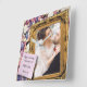 Relógio de parede quadrado elegante com quadro de madeira antigo com flores para 1º aniversário de casamento.