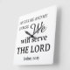 "Mas, quanto a mim e à minha casa, serviremos o Senhor", diz Joshua 24:15 na Escritura de Bíblia para ficar em sua casa. Faz um presente de excelente ou de casamento para famílias cristãs: com uma simples tipografia negra, e cartas modernas em forma de modelo. Você pode alterar a fonte/cores/texto.