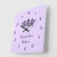 Relógio Quadrado Quarto da princesa Menina roxa personalizada