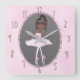 Relógio Quadrado Quarto de Meninas Rosa e Cinza com Balé Étnico