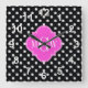Relógio Quadrado Quatrefoil Rosa Quente, Bolinhas Negra, 3 Monogram