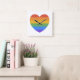 Esta trabalho de arte apresenta um coraçao listrado colorido no arco-íris.