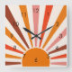 Relógio Quadrado Raios do Sol Retrospectivo Laranja Vermelho Amarel