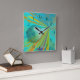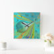 Relógio Quadrado Raios no design do abstrato do planeta na turquesa