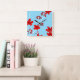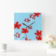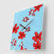 Ramais flóricos com flores vermelhas. A cor de fundo azul pode ser alterada para se adequar ao seu próprio estilo.