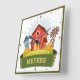 Fazenda de campo NOME ADD. Red Barn Ranch Homestead design - apresentando grande celeiro vermelho, fardos de feno, campo recém-lavado, silo enorme e moinho de madeira. Personalize com seu nome ou texto personalizado!