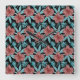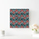 Relógio Quadrado Red flowers tropical seamless pattern &blue leaves