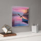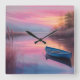 Relógio Quadrado Reflexão sobre o céu rosa de barco azul russo