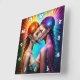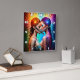 Duas mulheres com uma composição impressionante posam de perto, iluminadas por cores vibrantes e radiantes criando uma atmosfera visualmente atordoante e etérea.