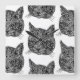 Cabeça ornamental branca e negra de um gato, inspirada num animal vivo e originalmente desenhada com caneta no papel.