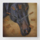 Relógio Quadrado Retrato preto do cavalo no Pergaminho-efeito