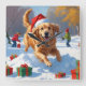 Relógio Quadrado Retriever ouro em neve com chapéu de Natal