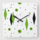 Relógio Quadrado Retro Green Diamonds & Starbursts Wall Clock