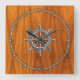 Um design náutico da roda em uma decoração de madeira do fundo do estilo da grão do folheado da teca. Um presente náutico moderno atrevido.