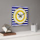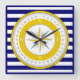 Relógio Quadrado Rosa Azul-Compass Amarelo e Stripe Branca