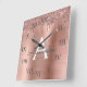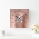 Relógio Quadrado Rosa Dourado - Nome do Monograma do Metal com Lant