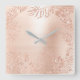 Relógio Quadrado Rosa Rosa Rosa Rosa Dourada Metálico Palma Metálic