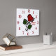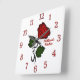 Relógio Quadrado Rosa vermelha com Números Vermelhos de Nome