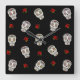 Relógio Quadrado ROSAS de crânios de açúcar rocháveis RAB em preto