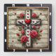 Relógio Quadrado Rosas vermelhas de Wooden Cross Hearts