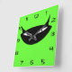 Retrorna o estilo moderno do relógio preto no estilo do meio século com números em fontes legal. Este gato legal parece um pouco brincalhão e meio malicioso. Mostrado no verde limão retrô, mas você pode mudar a cor de fundo se quiser.